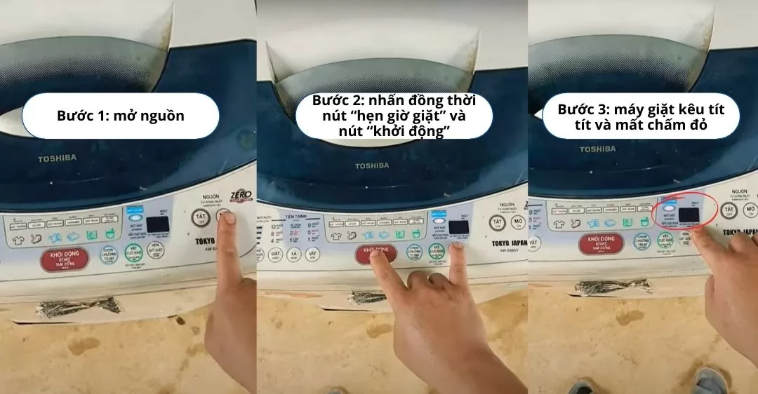 - Bước 2: Nhấn đồng thời nút “Hẹn giờ giặt” và nút “Khởi động” (hoặc các nút được chỉ định trong sách hướng dẫn sử dụng của máy).