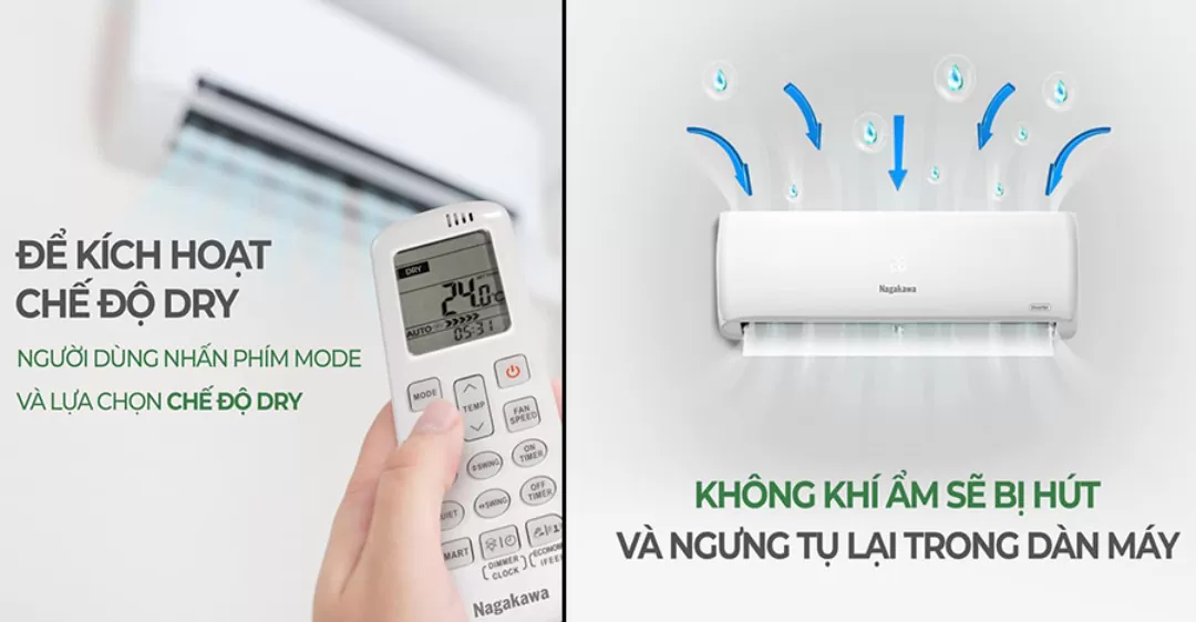 Chế độ Dry giúp hút ẩm trong phòng, mang lại cảm giác mát mẻ mà không cần hạ nhiệt độ quá thấp, từ đó tiết kiệm điện năng.
