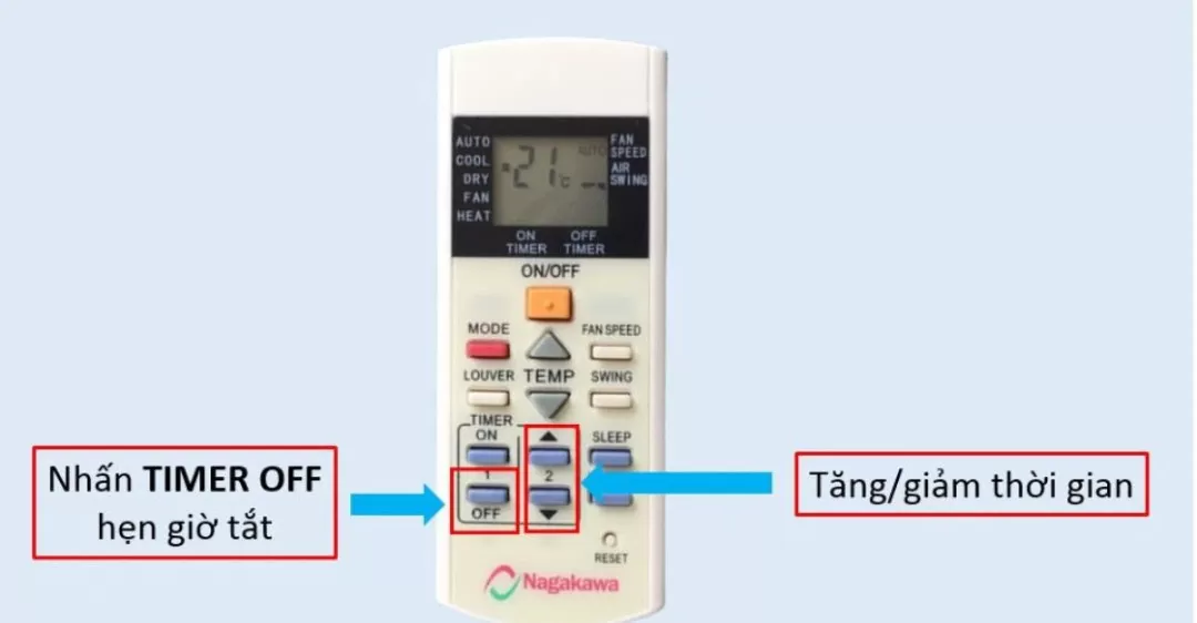 Tính năng hẹn giờ giúp bạn cài đặt thời gian hoạt động cho điều hòa, tránh tình trạng quên tắt máy khi không sử dụng, đây cũng là cách bật máy lạnh Nagakawa tiết kiệm điện hiệu quả.