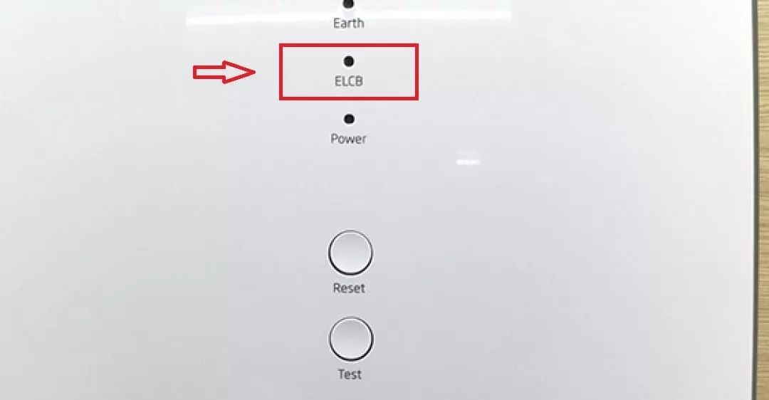 Để kiểm tra tính năng chống giật của ELCB, trước tiên hãy nhấn nút Kiểm tra. Chức năng chống giật sẽ được kích hoạt và tự động ngắt điện, tất cả các đèn trên máy sẽ tắt. Sau đó, nhấn nút Thiết lập lại để máy hoạt động bình thường. Đèn hiển thị của ELCB cũng sẽ bật sáng màu xanh