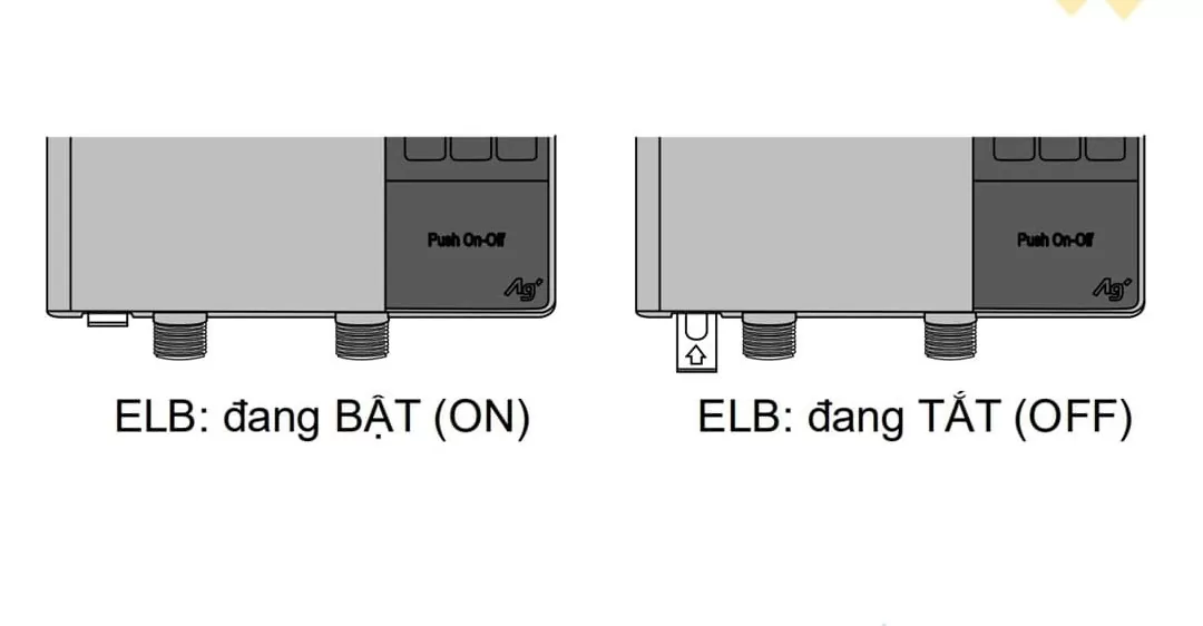 Trước khi sử dụng máy nước nóng, cần kiểm tra tính năng chống giật ELCB bằng cách nhấn nút ELB ở vị trí thân máy. Nếu nút báo điện rò rỉ ELCB sáng lên thì nguồn điện trong máy sẽ bị ngắt. Cần điều chỉnh ELB hạ xuống và ELCB sáng lên để máy hoạt động lại bình thường.