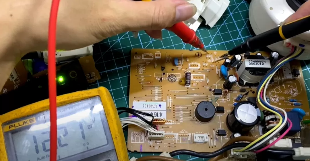 Kiểm tra bảng mạch bên trong, xem đường mạch nối với bộ phận nào, tiến hành đo theo từng thông số của linh kiện. Nếu chỉ số nào sai tức hiện đường mạch hay linh kiện đó đang hư. Khi phát hiện lỗi, tiến hành hàn mạch hay thay linh kiện cần thiết.