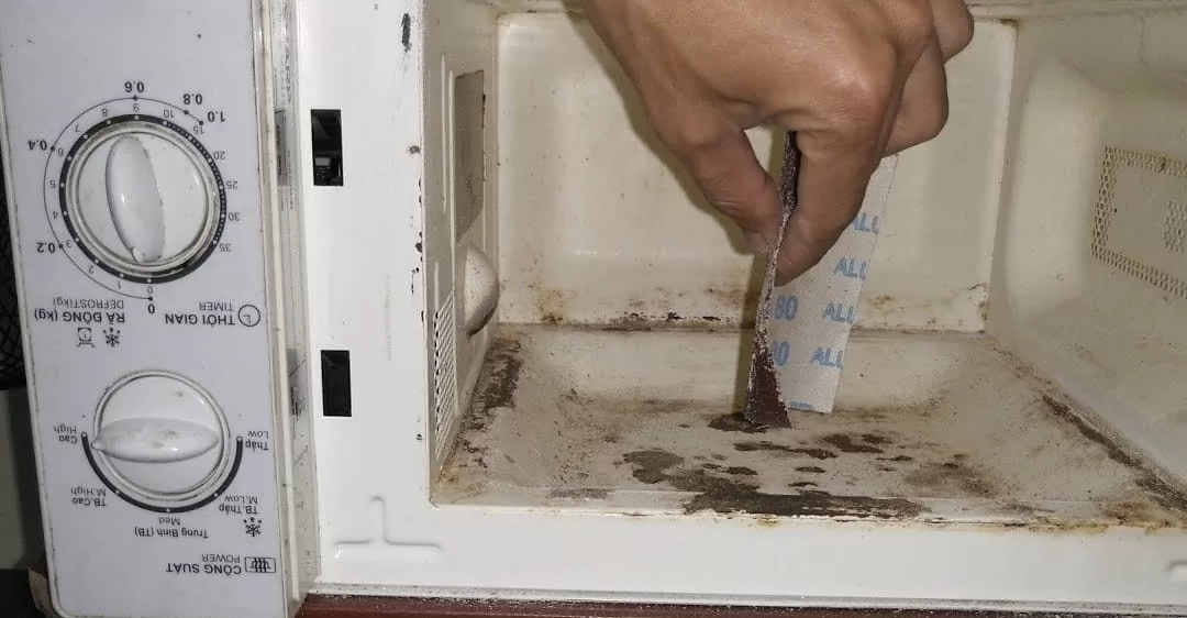 Sau một thời gian dài sử dụng lò vi sóng để hâm nóng thức ăn, thức ăn có thể rơi vào lò hoặc dính trên thành lò và gắn cứng lại. Mỗi lần sử dụng, lớp thức ăn này sẽ cứng và khó loại bỏ, gây ra tình trạng lò vi sóng Sharp bị bong tróc sơn hoặc gỉ sét.