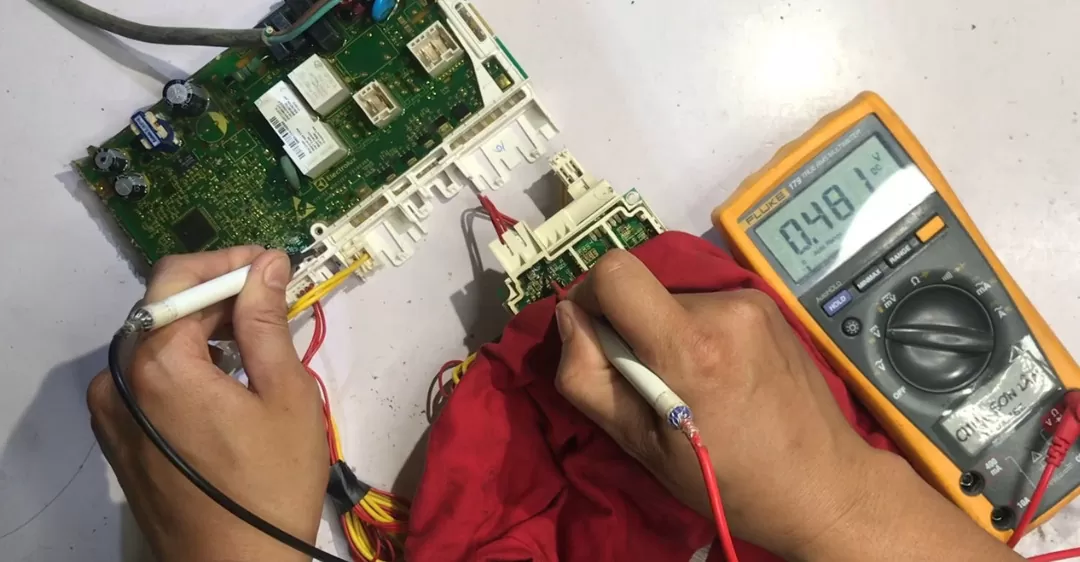 - Kiểm tra kết nối giữa mạch chính và mạch công suất: Lặp lại quá trình đo ở trên, nếu không còn xung giao tiếp, có thể kết luận bo giao tiếp (bo công suất) bị lỗi.