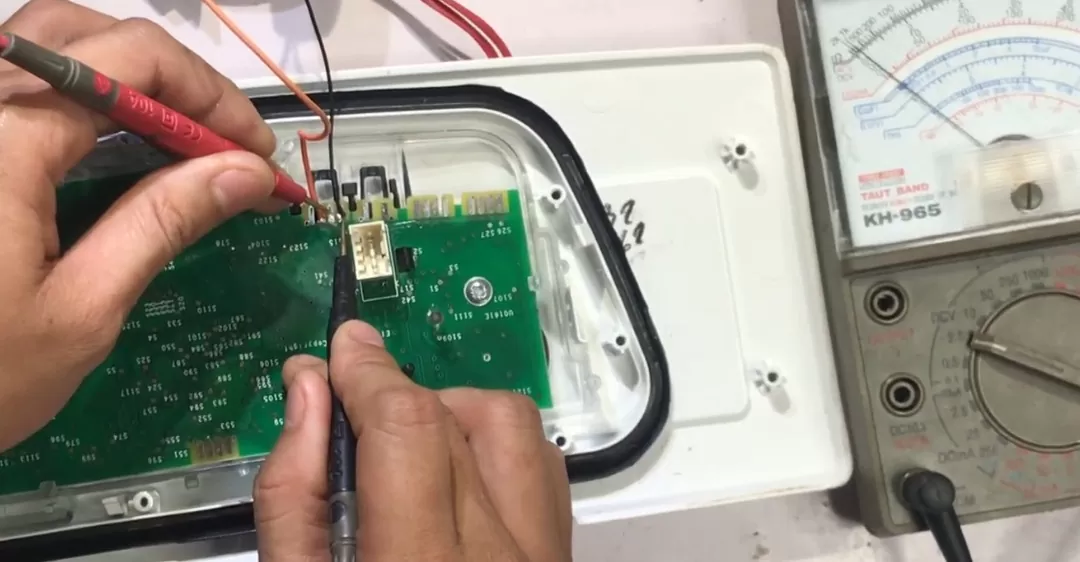 - Bật nguồn: Bật nguồn thiết bị và sử dụng đồng hồ vạn năng để đo xung giao tiếp tại chân data của jack cắm đi lên bo phím hiển thị. Nếu không có xung giao tiếp, chứng tỏ vi xử lý của bo chính chưa cấp tín hiệu hoặc mạch giao tiếp bị lỗi.