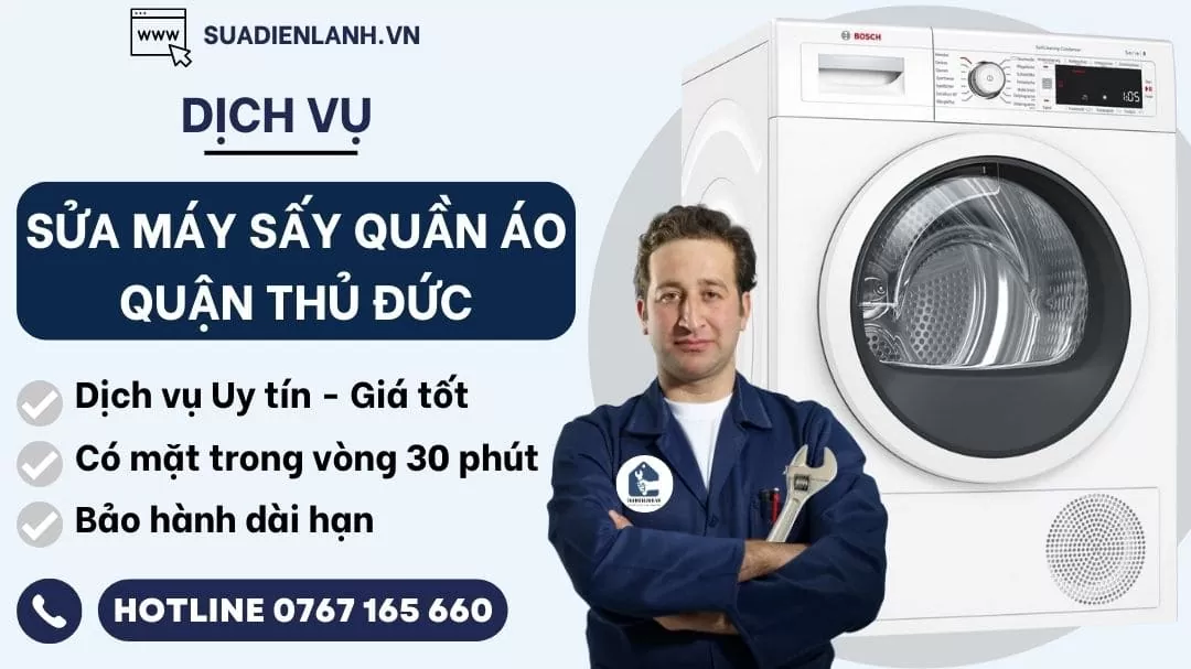 Bài viết trên đã cung cấp cho bạn những thông tin chi tiết về dịch vụ sửa máy sấy quần áo quận Thủ Đức. Nếu bạn gặp bất cứ vấn đề gì về máy sấy quần áo, hãy nhanh chóng gọi tới HOTLINE 0767 165 660 hoặc 0933 599 211 hoặc fanpage để đặt lịch ngay với những kĩ thuật viên uy tín của suadienlanh.vn