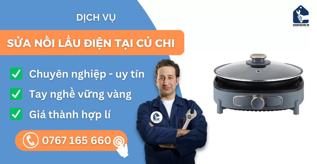 Nếu bạn đang ở Củ Chi và cần tìm một địa chỉ sửa chữa nồi lẩu điện uy tín với giá cả phải chăng, hãy liên hệ với suadienlanh.vn ngay qua số điện thoại HOTLINE 0767 165 660 để được phục vụ với dịch vụ sửa nồi lẩu điện tại Củ Chi tốt nhất .
