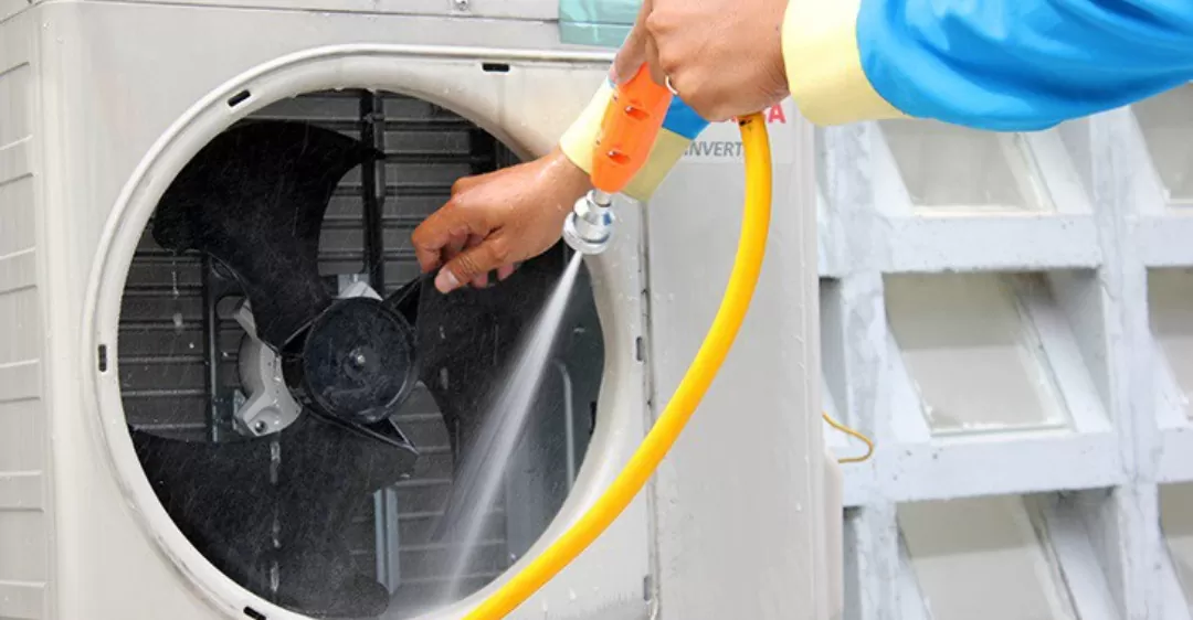 - Xịt rửa các lá tản nhiệt của dàn nóng bằng máy bơm áp lực cao, đảm bảo khả năng trao đổi nhiệt tốt nhất.